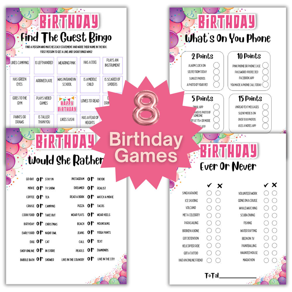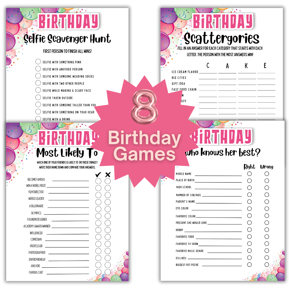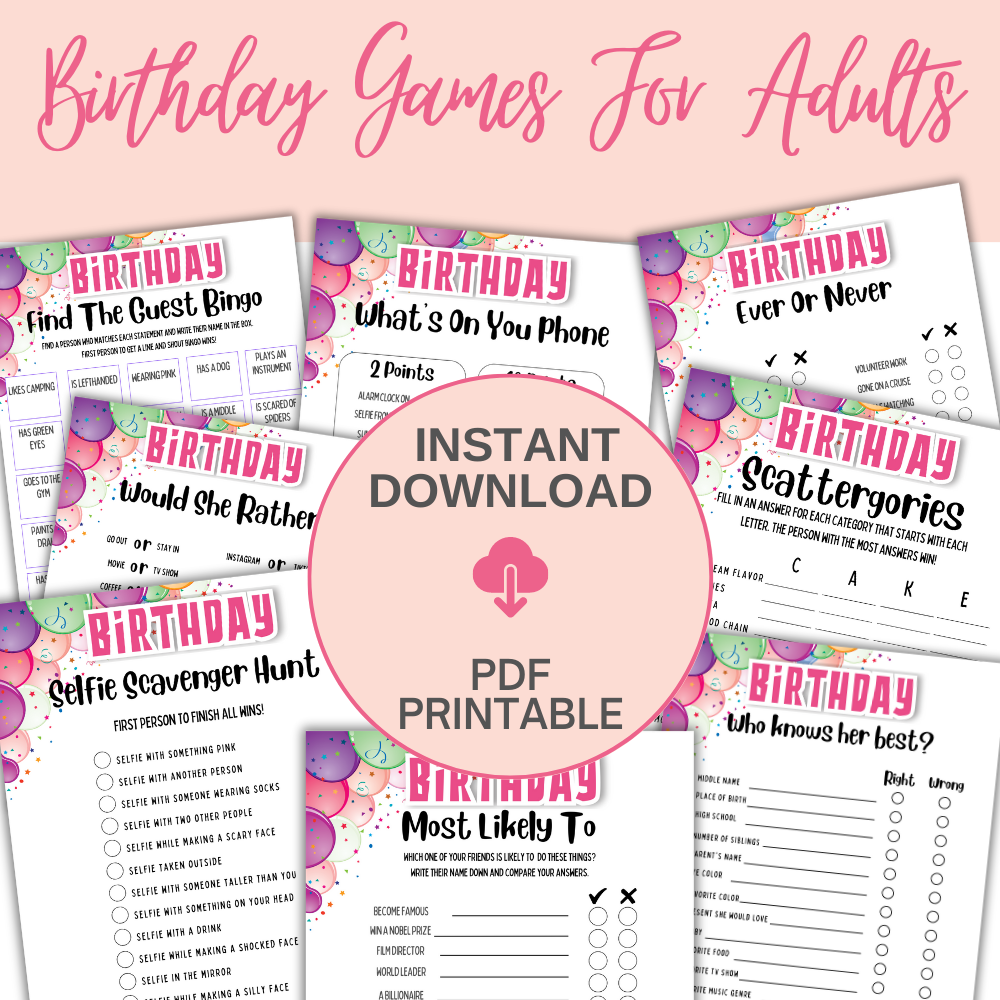 Birthday Printable Games - Women
