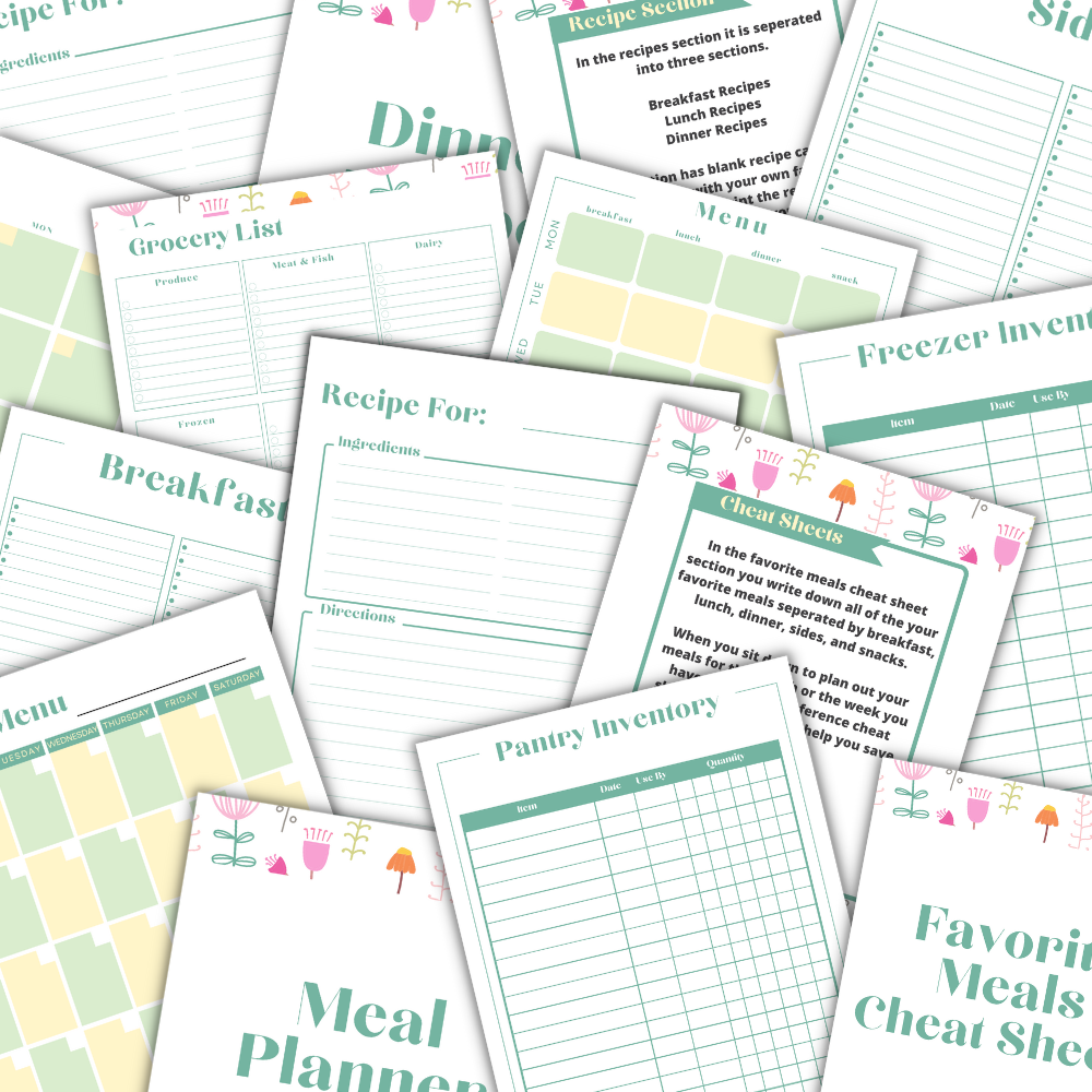 Kitchen Printable Planner - Green Flower